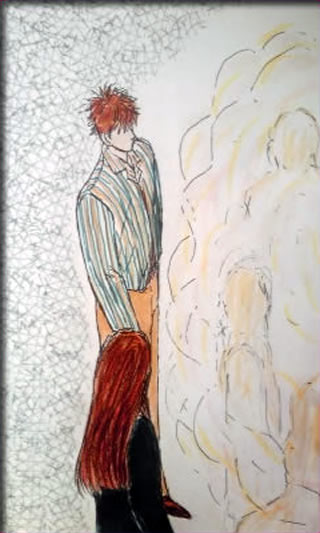 ふと気が付くと、同じく真野が、安心したのが悔しそうに複雑な泣き笑いの顔で身を引いて、騒ぎ明るい輪の外から、一同を懐かしむか愛着か、どちらとも取れる視線で見続けているのに、明は思わず擦り寄って行ってしまう。