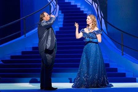 ベルトラン・ド・ビリーが指揮した東京フィル、アラベッラ役のアンナ・ガブラー、マンドリカ役のヴォルフガング・コッホを始めとした歌手陣も素晴らしい出来映えだったが、ほとほと見惚れてしまったのが青で統一された衣裳と舞台、そしてそれを引き立てる照明だ。