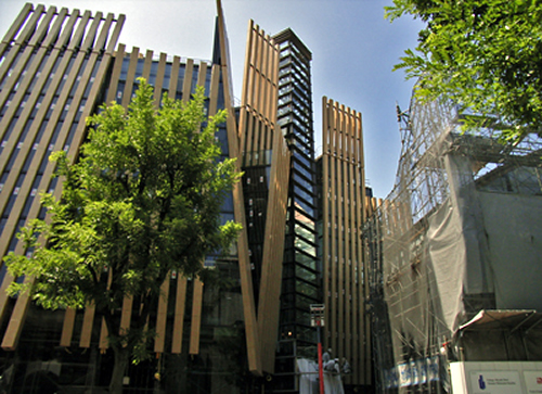 過去の歴史的建造物に配慮した建築を義務付けられているパリやミラノと違って、東京にはそうした自由な建築が許されている。