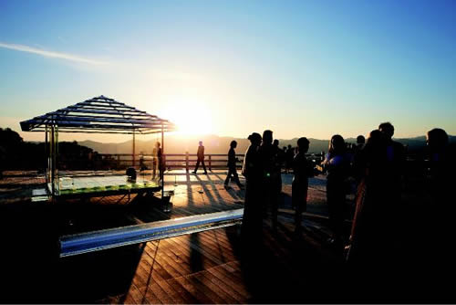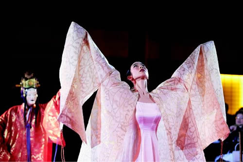 招待客は標高220mの将軍塚から日没と眼下に広がる京都市街の眺望を堪能し、観世流能楽師の津村禮次郎(れいじろう)が監修・出没した能とバレエをコラボレーションしたオリジナル・エンタテインメント「羽衣物語」を鑑賞。その後青龍殿で気鋭のシェフ・須賀洋介による創作フレンチに舌鼓を打った。