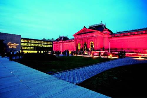 左の平成知新館には「カルティエ」のロゴが浮かび上がる