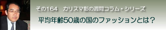 いずれにしても平均年齢50歳の国にふさわしいファッションがマーケットを支配することになるだろう。若者が引っ張るファッション市場という概念も変わるかもしれない。