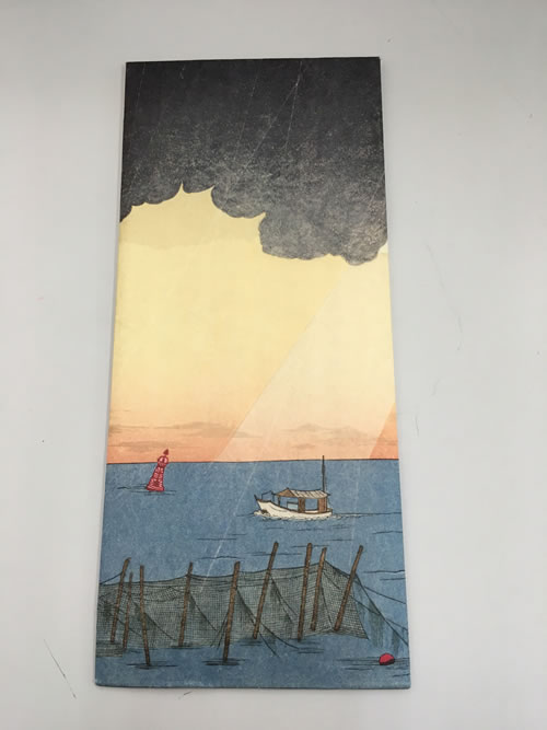 中の招待文を読むと、敬愛する木版画家の立原位貫(たちはらいぬき、1951~2015)が昨年急逝したが、今回はその展覧会も店内で行っていることの案内でもあった。封筒の表はその立原氏の木版画だ。