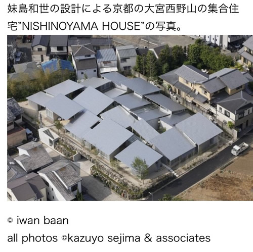 まず2013年9月30日完成以来3年がたつが、妹島和世氏が設計した集合住宅(全10戸)ということでいまだに注目されている「西野山ハウス」。京都市のちょっと北にある高級住宅地の大宮西野山にある。