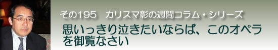 人間というのは哀しいものだ。これで、涙腺がゆるまないというのは難しい。思いっきり泣きたい方に是非、おすすめしたいオペラである。