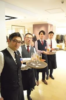 笑えるのは、4階の婦人服売り場の「イケメンギャルソンによるドリンクサービス」。4階に来た客にスパークリングワインを無料で提供するというサービス。イケメンギャルソンと言っても選抜された社員である。