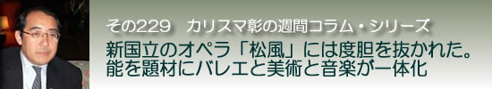 細川オペラのさらなる上演を期待したいが、とりあえずは「松風」の一刻も早い再演を希望する。