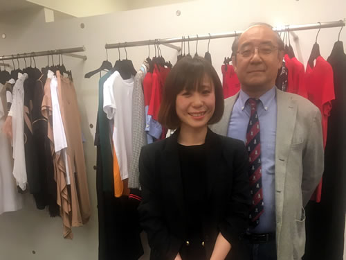 広告代理店の双葉通信の佐藤歩美さんと展示会会場で。