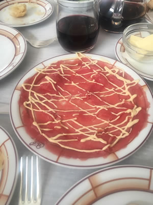 下は「ハリーズ・バー」の牛肉のカルパッチョ。