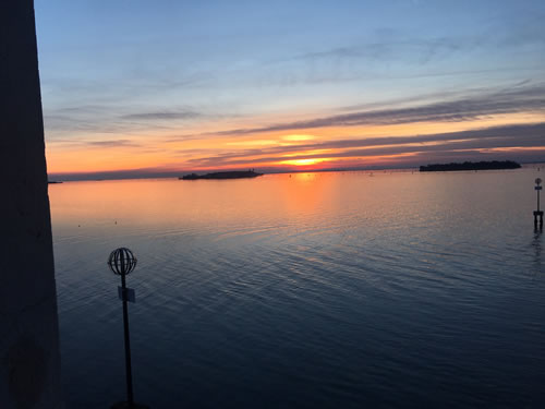 車が走っていないので、ヴェニスでは空の青さが際立っている。夕焼けもこんなに美しい。