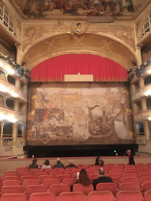 しかし滞在中にフェニーチェ歌劇場では上演がなくそのサブ劇場(バロックオペラなど小規模なオペラを上演)であるマリブラン劇場(900席)で、モーツァルトが15歳の時に作曲した「シピオーネの夢」(1幕もので上演時間90分)というオペラを観た。