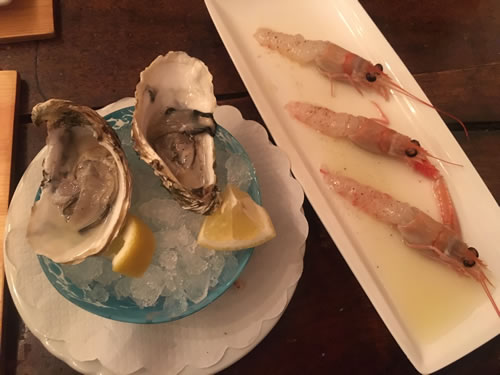 「アンティカ・カルボネラ」では生で牡蠣とエビも食べたがかなりのレベル。
