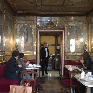 サンマルコ広場の周辺には、ヴェニスで69歳の生涯を閉じたワーグナーが良く通った「カフェ ラ ヴェンナ」など有名なカフェがあるが、今回入ったのは1720年創業の「カフェ フローリアン」。