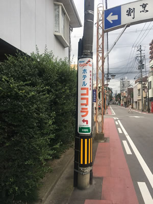 市内に戻り、仲間町の母用の老人ホーム見学の後に近くの電柱広告。「ココラ」。
