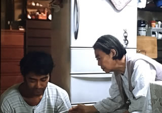 その歌詞を捉えて、樹木希林が「私はこの歳になるまで、海よりも深い愛なんて感じたことないよ」と息子の阿部寛にぽつりと洩らす。(上掲写真)。