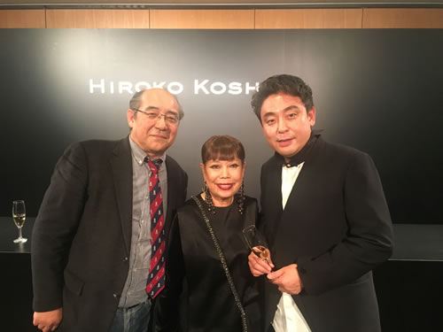 デザイナーのコシノヒロコさんとピアニストの横山幸雄さんとのスリーショット。