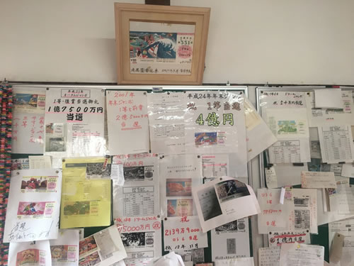 宝当神社には、参拝者から送られてきた御礼状が貼られている。ホンマかいな?