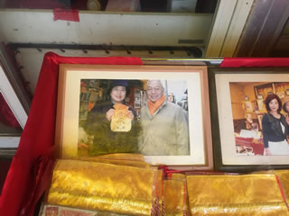 なぜか店のオバさんとドクターコパのツーショット写真が幸運招き袋の什器に置かれていた!
