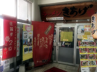 「きあげ」とは、醤油の搾りたてのものらしく、とんこつスープにこの醤油が加わってなかなか独特の味わい。