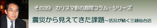 不謹慎であることは十分承知の上で述べれば「こんなに売れるのは入社以来初めて」と語る仙台の百貨店若手社員の声に代表されるように、「震災特需」に沸いているとも言える。