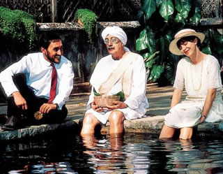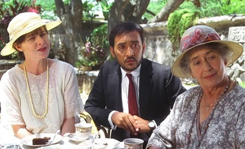 左から傷害を負った英国人女性(ジュディ・デイヴィス)、その容疑者にされたインド人医師(ヴィクター・バナルジー)、2人に理解を示す英国婦人役(ペギー・アシュクロフト)。