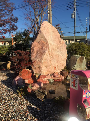 1件目は、「彩石の蔵」という天然石ギャラリー。下の写真は入口の庭に置いてある日本最大級の紅水晶。