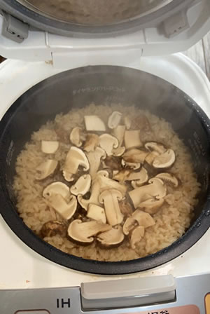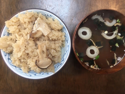 お土産でもらった松茸を炊き込んだ松茸ご飯を、翌日昼に炊いて食べた!