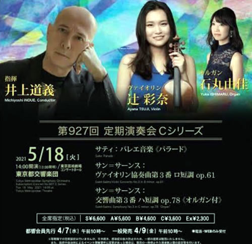 前半の2曲目は、既に今年3回目の実演立ち会いになる辻彩奈のヴァイオリンでサンサーンスの3番の協奏曲。私はもちろん辻彩奈のファンクラブには入っていないが、気になる存在ではある。