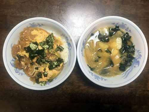 ◆昼飯は急に食べたくなったカツ丼とジャガイモ・ワカメ・大根の味噌汁!