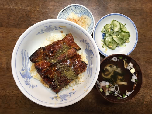◆ 本日の昼飯はスーパー特売品のウナギを使ってまたまた鰻丼!