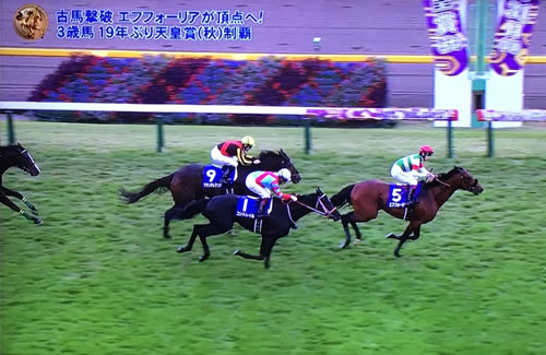 本日(10月31日日曜日)のG Iレースは天皇賞(秋)だった。小雨が断続的に降っていたが良馬場の東京競馬場芝2000mが舞台。