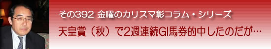来週はG Iはお休みだが、11月は再来週から3週連続でG I(エリザベス女王杯、マイルチャンピオンシップ、ジャパンカップ)がある。そのうちなんとか2つ当てたいものだが。