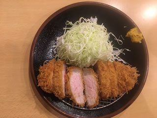 定食セットから320円引きが単品の値段ということでロースとんかつ並(130g)単品680円を頼む。ピンク色の断面がなかなか見事な揚げ姿である。