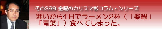 本日、ラーメン店を昼飯、夕食とハシゴしてしまった。やはり冬の寒させいか。