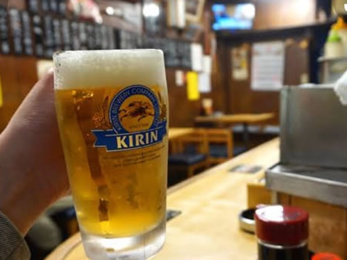 この店、何が旨いかというと、生ビール(キリンラガー)がおそろしく旨いのだ。