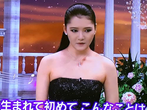 番組のゲストで登場した服部はそのときのことを撫然と振り返る。彼女の左鎖骨付近の赤アザに注意して欲しい。激しい練習のためについた赤アザである。それにメイクが個性的というか強烈だ。