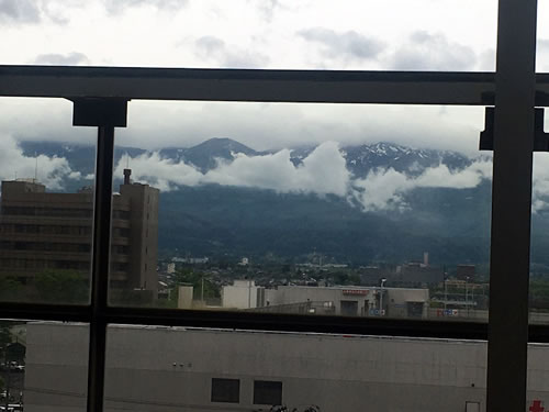 | 福島駅新幹線ホームから吾妻小富士を望む |