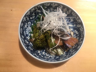 天ぷらが3000円で天ぷら盛り合わせが6000円という値段におそれをなして、酒(飛露喜、弥右衛門)をアジの刺身を肴に飲んで、早々とそばへ。