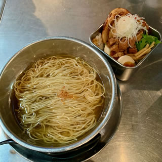 動物系脂を一切使用せず、数種類の削り節をブレンドし、低温で旨味を抽出した透明感のある「魚介出汁100%スープ」を使ったラーメンを提供している。