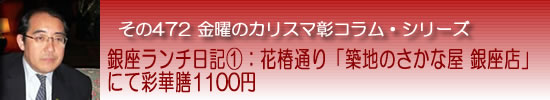 昨日の昼飯。 花椿通りの並木通り寄りの「築地のさかな屋 銀座店」(新橋ビル地下1階、銀座8-6-3)にて、彩華膳1100円(税込)。 刺身(マグロ2切、鯛2切)、銀鱈西京焼き、卵焼き2切、野菜サラダ、里芋煮、ヒジキ煮、青菜の御浸し、高菜漬け物、味噌汁、御飯。 築地の中島水産の経営だ。