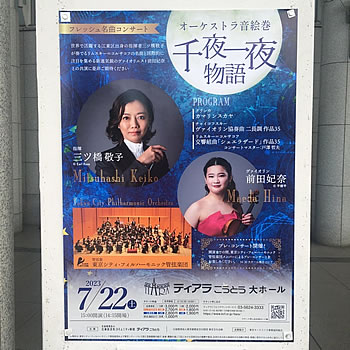 三ツ橋敬子指揮の「シェエラザード」(コンサートマスター:戸澤哲夫)が後半には演奏された。