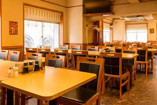 ハデなA看板を見て、内容を確認して狭い階段を2階へ上がる。すると130席あるという食堂がそこには待っていた。中華レストランというより食堂である。