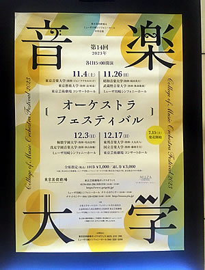 昨日(12月3日日曜日15時)、ミューザ川崎シンフォニーホールにて、音楽大学オーケストラフェスティバル第3回を聞く。