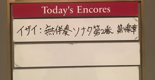第3楽章も完璧な技巧を余す所なく披露した。アンコールのイザイの無伴奏ソナタはさらに凄まじい超絶技巧に圧倒された。