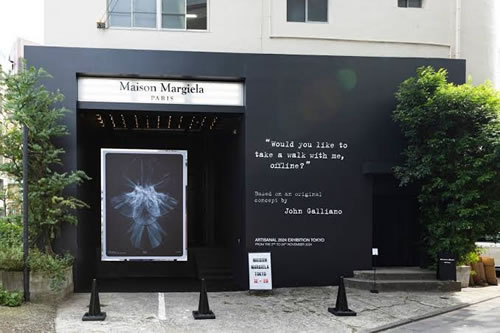 1階は「メゾン マルジェラ」のショップだが、今回の「アーティザナル展」は、同じビルの3階。2024年1月にパリのセーヌ川河畔で行われた「メゾン マルジェラ アーティザナル2024」が展示されている。