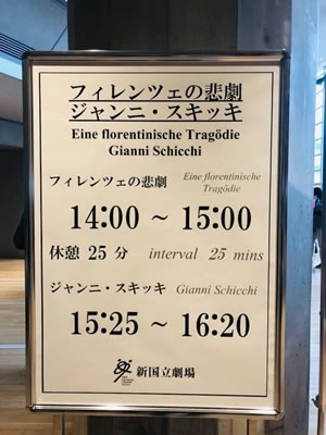 フィレンツェに因む2つの1幕オペラ「フィレンツェの悲劇」(ツェムリンスキー作曲)と「ジャンニ・スキッキ」(プッチーニ作曲)が演目。なかなか洒落たダブルビルだ。