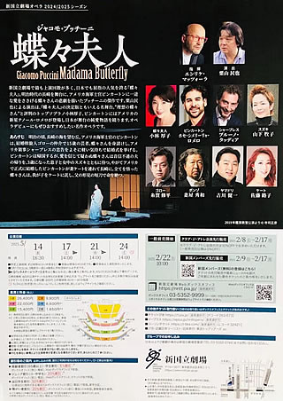 演目はプッチーニ作曲「蝶々夫人」。4日間公演の3日目に出掛けた。このプロダクション(演出:栗山民也)は2005年にこの劇場に初登場し、今回は実に9回目の上演。私も2011年以来5回目の鑑賞だ。