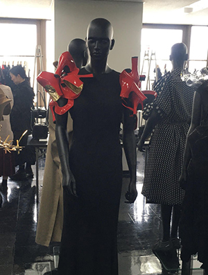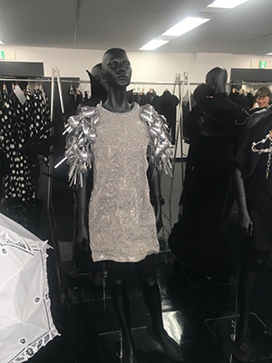 10月にパリコレでショーを発表した「コム デ ギャルソン」(デザイナー川久保玲)、「ジュンヤ ワタナベ」(デザイナー渡辺淳弥)、「ノワール ケイ ニノミヤ」(デザイナー二宮啓)の3ブランドなどが展示されていた。