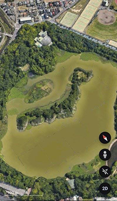 ◆兵庫県伊丹市には日本列島が浮いている池がある。