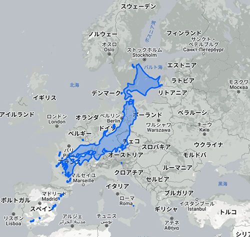 ◆「狭い日本にミサイルなんかいらない」というtwが流れていくのを観測しましたので、The True size of ... で表示させた日本と欧州の対比をお示ししましょう。日本列島、けっこう長いのです。